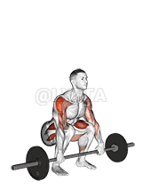 Stand facing the barbell, positioning yourself so that the barbell is resting on your upper back and shoulders, not your neck. Keep your feet shoulder-width apart, toes slightly pointed outwards.