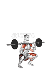 Lower the barbell back to your shoulders, then perform a back squat by moving your hips back and bending your knees to lower your body as far as you can.
